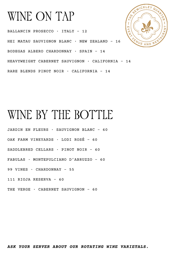 Sewickley Quarter Menu